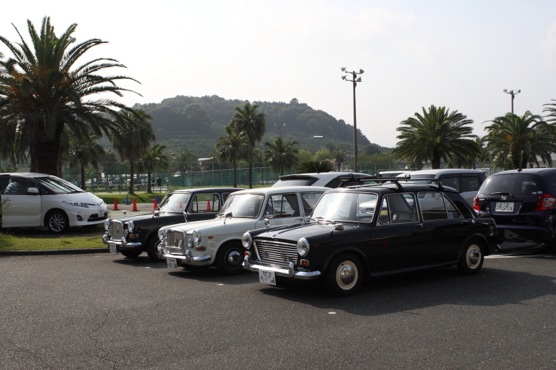 前日からの宿泊組 遠く九州からのエントラントも・・・。 1100CLUBはネットを使って全国津々浦々にメンバーがいるクラブです。 ADO16にこだわらずMGやミニやら英国車愛好者のクラブです。 |