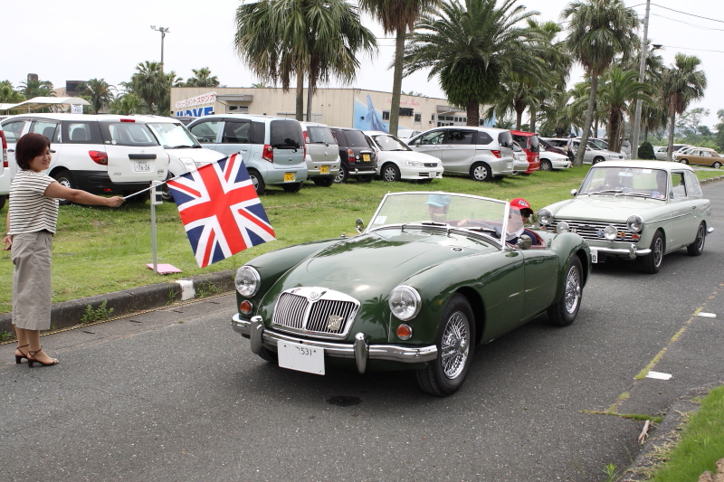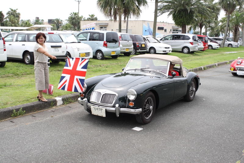 ショートツーリングのスタート T会員のMG-B 助手席はK会員。 ミートザMGのラリーでは好成績を挙げるコンビ |