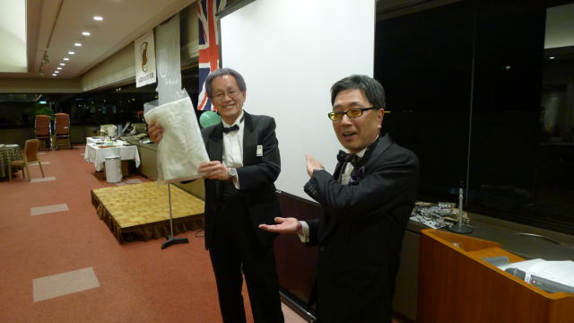 パーティー開始前、スクリーンには40年以上前の催し物写真がスライドされ、昭和の時を懐かしんだ会員もお見えでした。