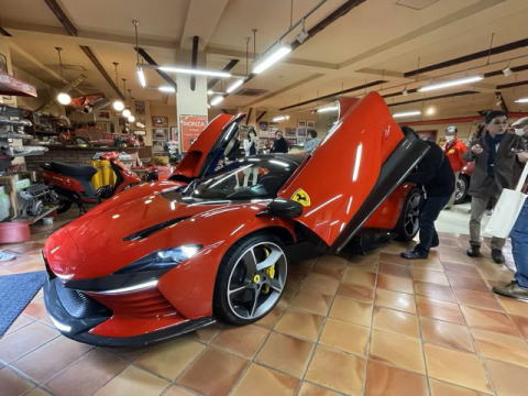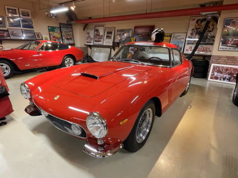 ガレージの厚い鉄製の入口を潜った途端、デイトナSP3が目に入り広々としたガレージを見渡すとSP1、750モンツァ アルミボディ、250GT SWB、250GT