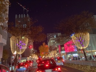 流石に師走の夕方、厳しい寒さを感じましたが、街を埋めつくす多種多様なイルミネーションの輝きが心を楽しく暖かいクリスマスの気持で満たしてくれました。